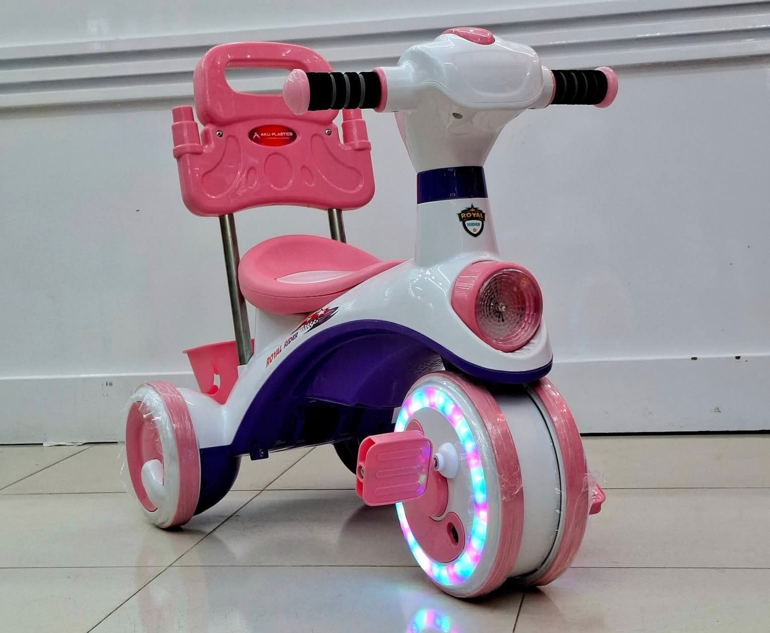 রয়েল রাইডার বাইক - পিংক কালার ট্রাইসাইকেলটি উন্নতমানের ফাটল-প্রতিরোধী প্লাস্টিক দিয়ে তৈরি, যা একটি সুন্দর রঙের সংমিশ্রণে তৈরি যা আপনার বাচ্চাদের জন্য একটি কার্যকর খেলনা। এটি আপনার বাচ্চাদের আরও আত্মবিশ্বাসী এবং খেলাধুলাপূর্ণ করে তুলবে। এটি শারীরিক কার্যকলাপ বৃদ্ধি করবে এবং ভবিষ্যতে তাদের আরও উৎপাদনশীল হতে প্রভাবিত করবে এমন ডিভাইসগুলির সাথে আপনার সন্তানের সময় কমিয়ে দেবে। এই ক্যাপ্টেন বাইকটি অনেক গবেষণার ফসল এবং এমন একটি আকারে তৈরি করা হয়েছে যা একটি শিশুর শরীরের পেশীগুলির সঠিক নড়াচড়া এবং রক্ত সঞ্চালন নিশ্চিত করে। এটির হ্যান্ডেলবার এবং চাকার উপর একটি গ্রিপ রয়েছে যা আপনার বাচ্চাদের সম্পূর্ণ সুরক্ষা নিশ্চিত করে। এটি আপনার প্রিয় সন্তানের জন্য একটি দুর্দান্ত সঙ্গী হবে।